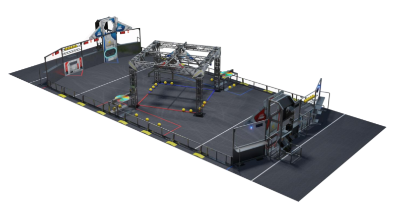 This game starts off with a 15 second autonomous period where robots are controlled autonomously. In the remaining 2:15, drivers take control of the robots. Robots control Power Cells (seven inch diameter dodge balls) and score them in either the Power Port’s Lower, Outer, or Inner goals located at the opposing alliance’s wall. Alliances progress through three stages to activate the Shield Generator. The first one requires scoring nine power cells. Stage two is completed when twenty additional power cells are scored and a spinner called the Control Panel is spun three to five times. Finally, the third stage is activated when another twenty power cells are scored and the Control Panel is spun to a specific color. In Endgame, robots hang on the Shield Generator Switch and attempt to level it to score points.