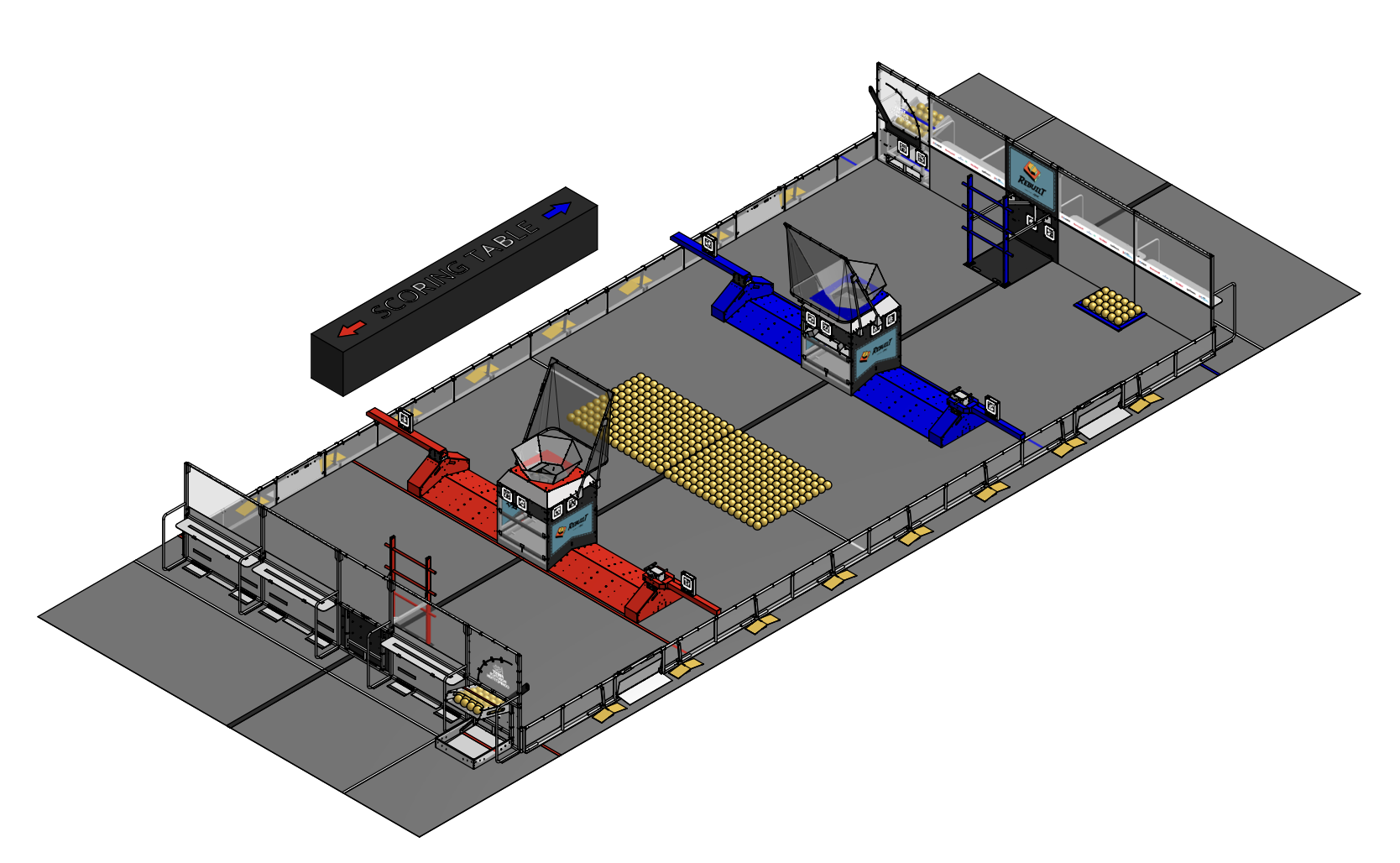 In the 2026 FRC competition, two alliances of three teams each compete to earn points by scoring Fuel in their active hub and clmibing their tower. Alliances earn additional rewards for meeting additional scoring thresholds. Robots start each Match on their Starting Line, and during the first 20 seconds of the match, robots are autonomous, and can be programmed to score Fuel. They can then climb their tower at the end of the autonomous periods. During the teleop period, drivers can control their robots to score Fuel and climb the tower.